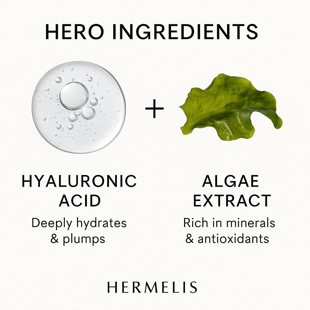 powerhouse duo that delivers deep hydration and locks in moisture, while seaweed extract revitalizes the skin for a fresh, healthy glow.